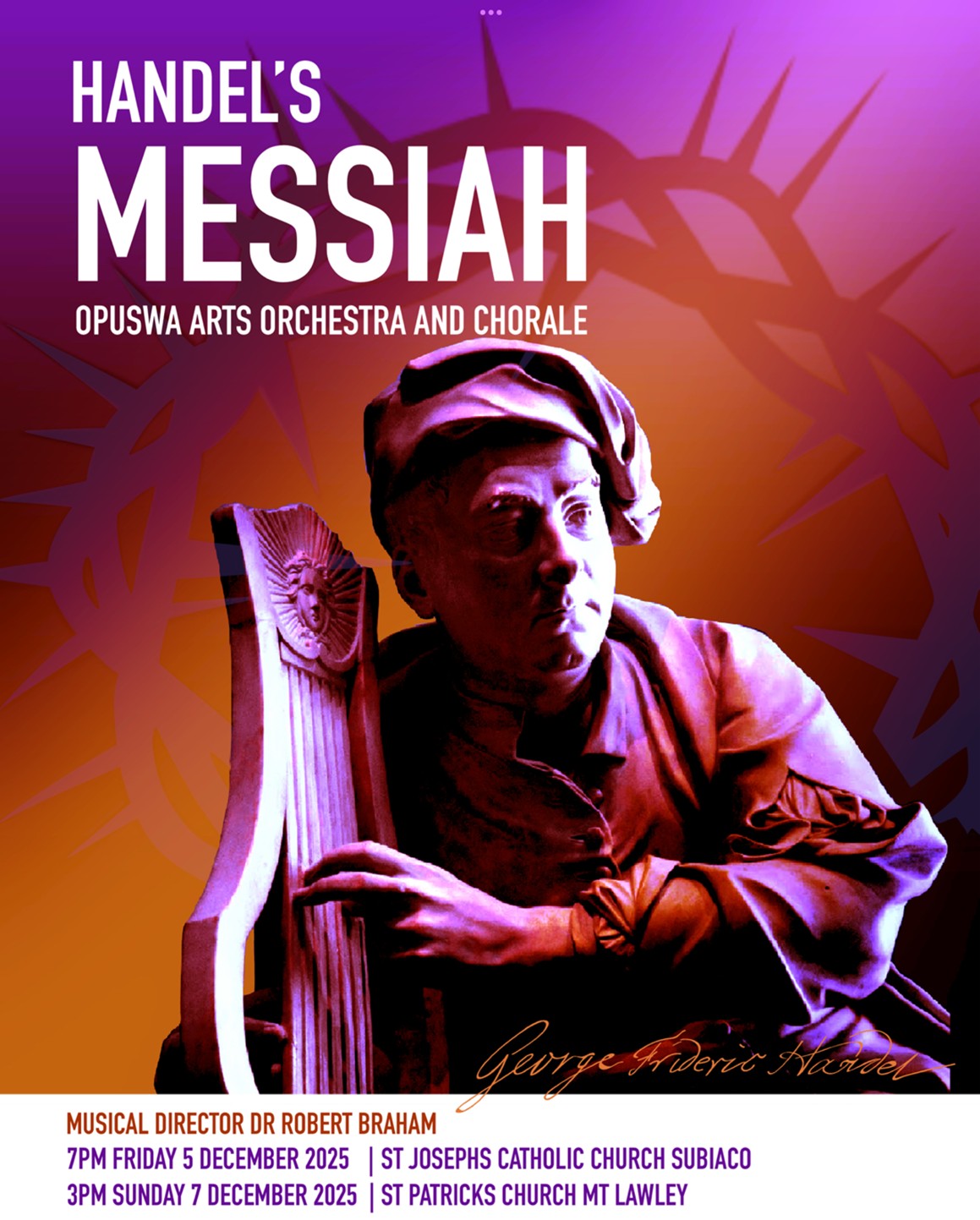 Celebrate the joy of the festive season with OpusWA’s presentation of Handel's Messiah, performed in the intimate ecclesiastical setting for which it was originally composed. Tickets available at trybooking.com/eventlist/opuswa. For further information please visit opuswa.com.au.